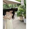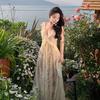 Pure Apricot Neck Sling Dress Women's Summer Xinjiang Yunnan Dali Seaside Vacation Flash Diamond Backless Dress
