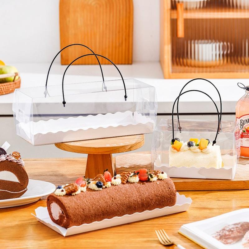Portable Cake Roll Transparent Box Western Style Dessert Packaging Boxes Rectangular Pastry Case 10pcs Handheld Swiss Roll Cases Double-sided Laminat