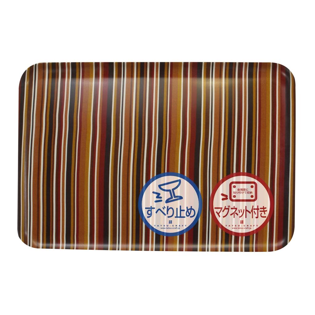 Magnetic Milano Sorrento Magnetic Scandinavian Made in Japan TATSU-CRAFT Tray, Large, 39cm, Stripe, SB, Brown, Non-Slip, Tray, Style, Kitchen,