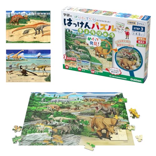 Gakken Discovery Puzzle Jigsaw Puzzle, 3-Piece Set, Dinosaur, Step 3 (Ages 3 and Up), 83537