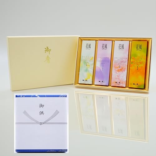 Hanakaze Four-Flavor Incense Set: Ultra-low Smoke Incense in Lavender, White Plum Blossom, Neroli, and Osmanthus Scents. Includes Gift Wrapping and a