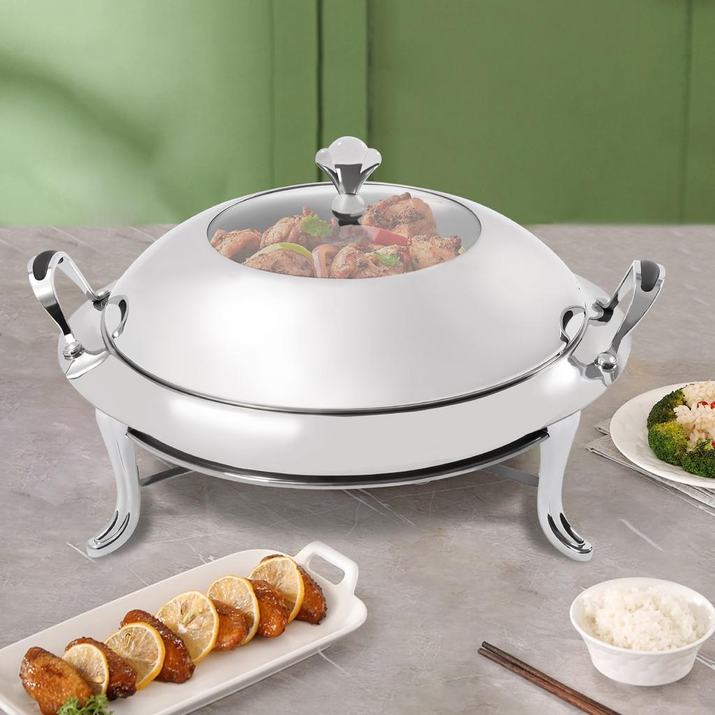 Chafing Dish, Runder Buffet-Wärmer aus Edelstahl, 38cm/14.96in Serviertablett, 3L/3.17Qt Fassungsvermögen, Wiederverwendbarer Brennstoffhalter mit Deckel