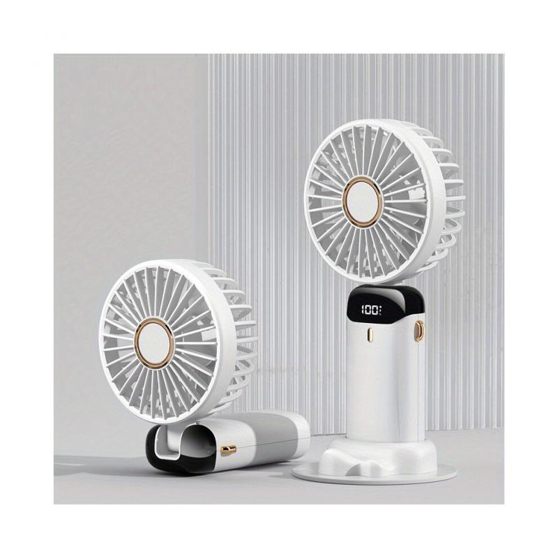 (Weiß) 1 Stück wiederaufladbarer Hand-Mini-Ventilator mit 5 Geschwindigkeiten und LED-Anzeige Beschreibung