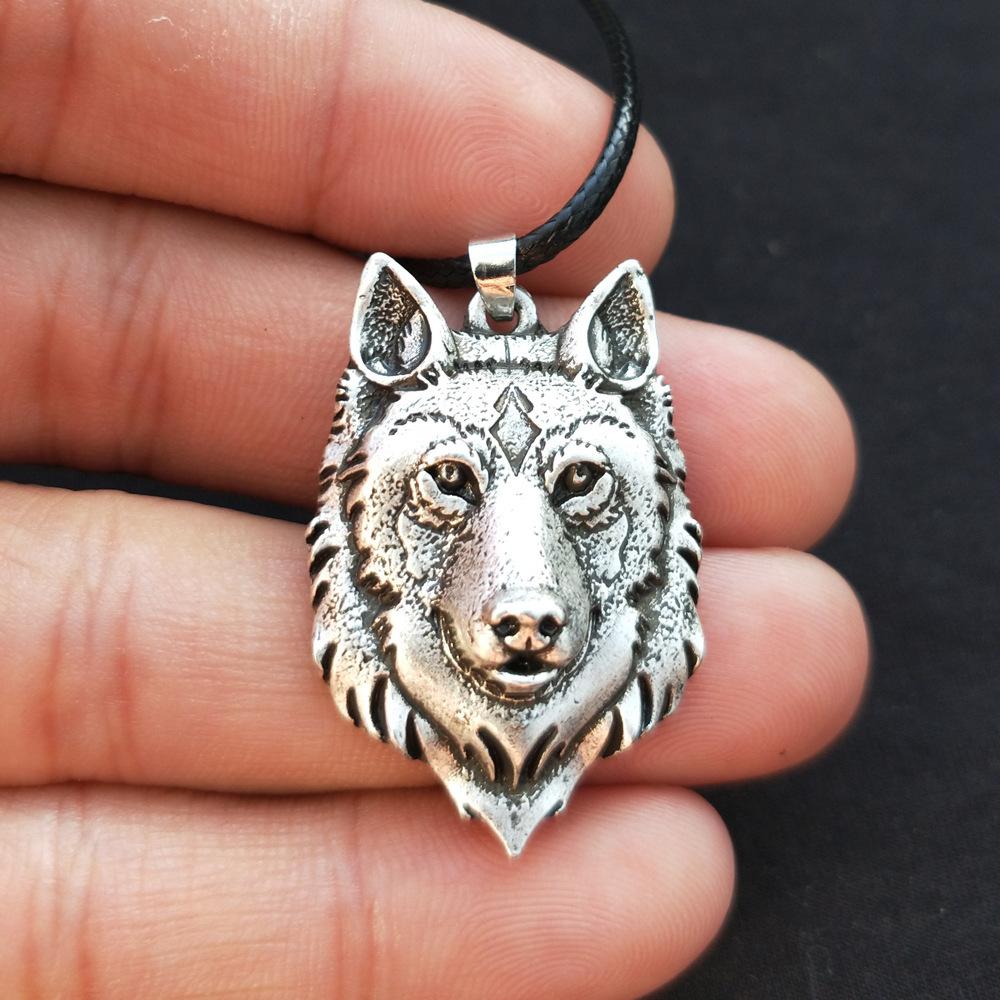 Tibetisches Silber Wolfskopf Anhänger Halskette Amulett Tier Wikinger Geschenk