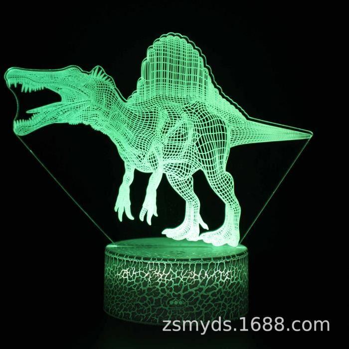Lampe LED 3D - Dinosaure - Noir - 7 couleurs - Télécommande - Intérieur