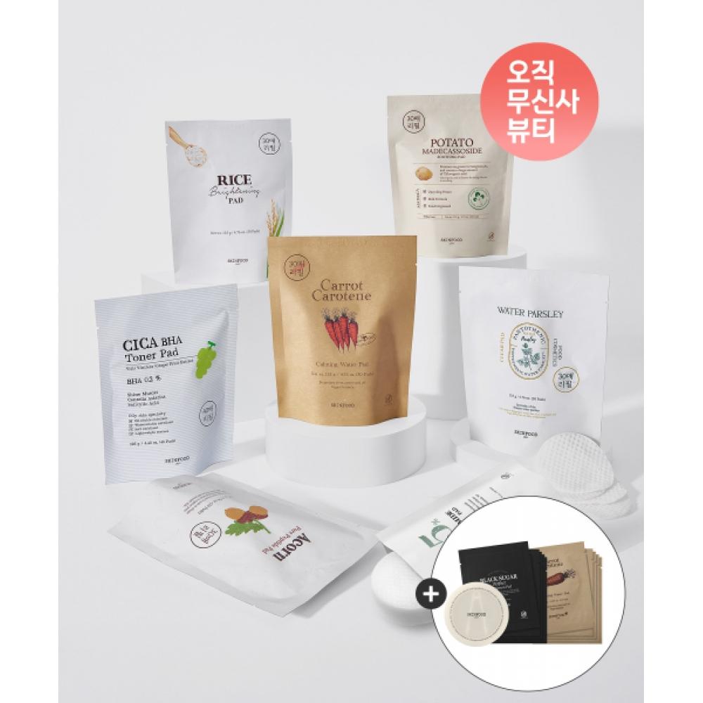 SKINFOOD [Total 200 Sheets][4+2] Carrot & Minari Other Pad 30 Sheets Refill is a complex pad set that includes organic carrots and minari from Jeju Island. It contains a total of 200 sheets and is available in a 4+2 format, suitable for all skin types. The pads are thickly designed and are infused with sufficient essence, providing moisture until the very last sheet.