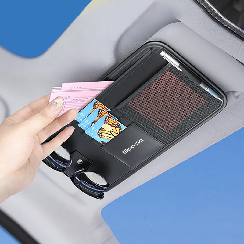 🚗【Exklusives Logo-Design】Diese Aufbewahrungsbox für die Sonnenblende des Autos ist mit demselben Spacia-Logo bedruckt wie das Originalfahrzeug, was ihr ein luxuriöses Gefühl verleiht, als wäre sie ein Originalteil des Autos.. Die kunstvoll gestaltete Sonnenblendentasche trägt das exklusive Logo des Spacia und fügt sich harmonisch in die Armlehne und den Innenraum des Fahrzeugs ein, was ein nahtloses und einheitliches Erscheinungsbild schafft.