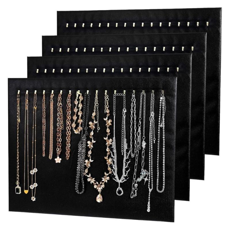 4 Stück Leder-Schmuckaufbewahrung mit 17 Haken, schräger Präsentationsständer für Halsketten, Polyester-Konstruktion
