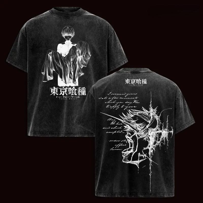 Hot Anime Tokyo Ghoul Kaneki Ken Clothing Men Women Short Sleeve Tshirts Washed Cotton Tee Oversized T-shirt Harajuku T Shirt
