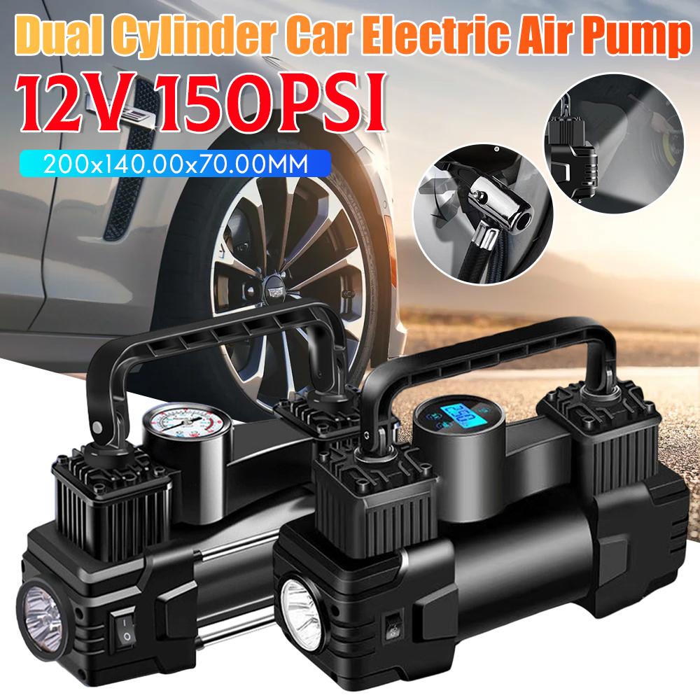 Auto Inflatable Pump 12V 150PSI Dual Cylinder Heavy Duty Air Compressor with Pressure Gauge LED Light for Car Moto Bicycle Balls