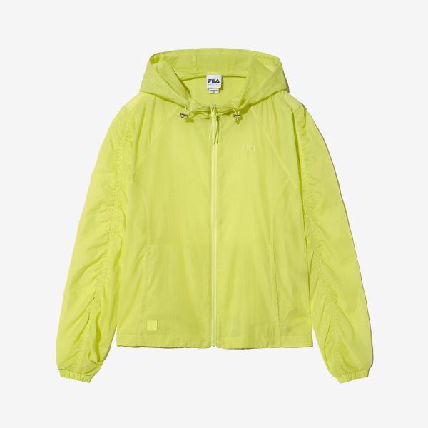 The FILA Lightweight Ripstop Shirred Hooded Windbreaker is a jacket suitable for women's hiking and outdoor activities. This product is made from lightweight ripstop material, making it light and durable, while the hood design protects against wind and rain. The shirred detail on the sleeves emphasizes a feminine silhouette, and the back ventilation feature provides breathability. The short length allows for high mobility, making it ideal for exercise wear as well.