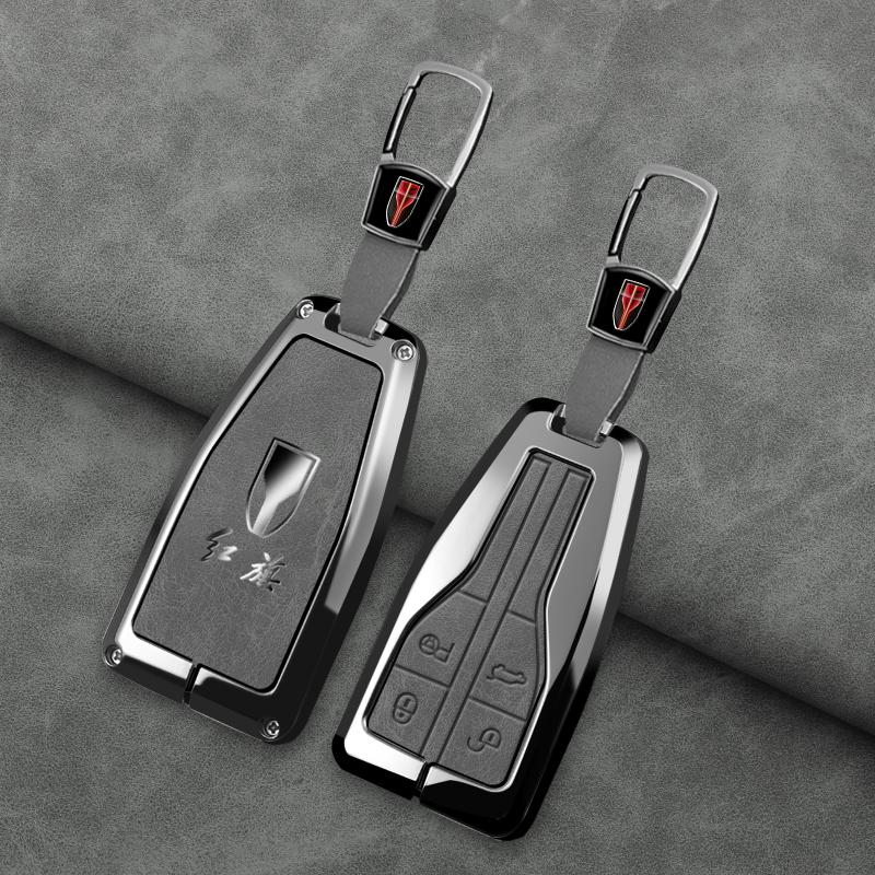 Zinc Alloy Car Key Cover Case Shell Holder Protector for Hongqi HS5 HS7 HS E HS9 Logo Keychain Bag Set Interior Accessories