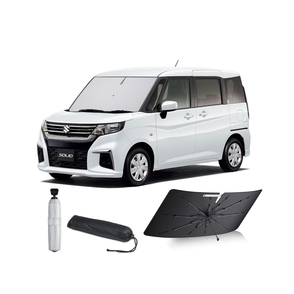 ASZSK Schirm-Stil Windschutzscheiben-Sonnenschutz für Suzuki Solio (4. Generation) MA27S, MA37S, MA47S und MAD7S. Knitterfest, Faltbar, Einfache Montage, Langlebig, Fiberglas-Streben, UV-Schutz, Perfekt für Parkplätze und Camping mit dem Auto. Anpassbare Innenraumteile für den Solio MAD7S.