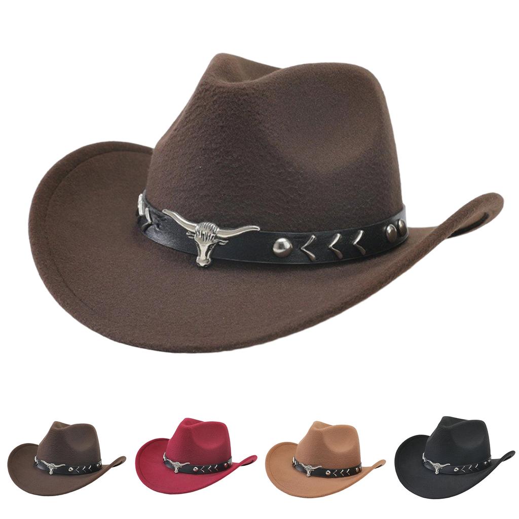 Westlicher Cowboyhut, Ethnisch, Woll-Zylinderhut für Herren und Damen, Kuhkopf-Jazzhut
