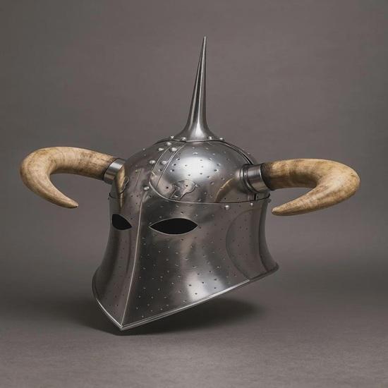 Die massive Stahlkonstruktion verleiht diesem Helm ein realistisches Gewicht und Gefühl, was ihn ideal für mittelalterliche Reenactment-Kostüme, Fantasy-Conventions und professionelle Fotoshootings macht.. Die hornförmige Struktur verstärkt das dramatische Erscheinungsbild und lässt Sie sofort hervorstechen.
