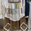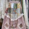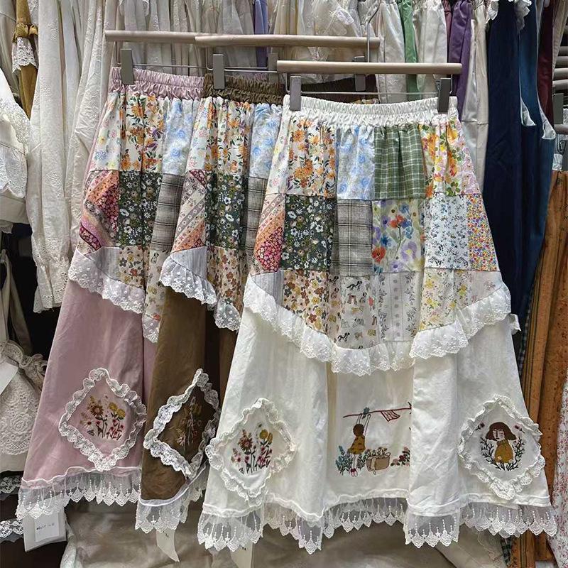 2025 Autumn Women's Plaid Floral Patchwork Fleece-Lined High-Waisted Midi Skirt in Japanese Rural Style