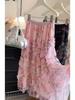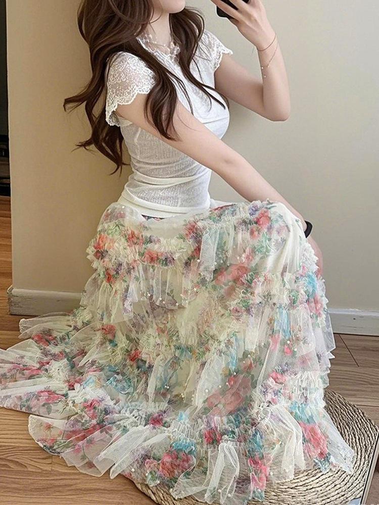 Tüllrock mit Perlen und Blumendruck und unregelmäßigem Saum - Damen Netz-Puffrock