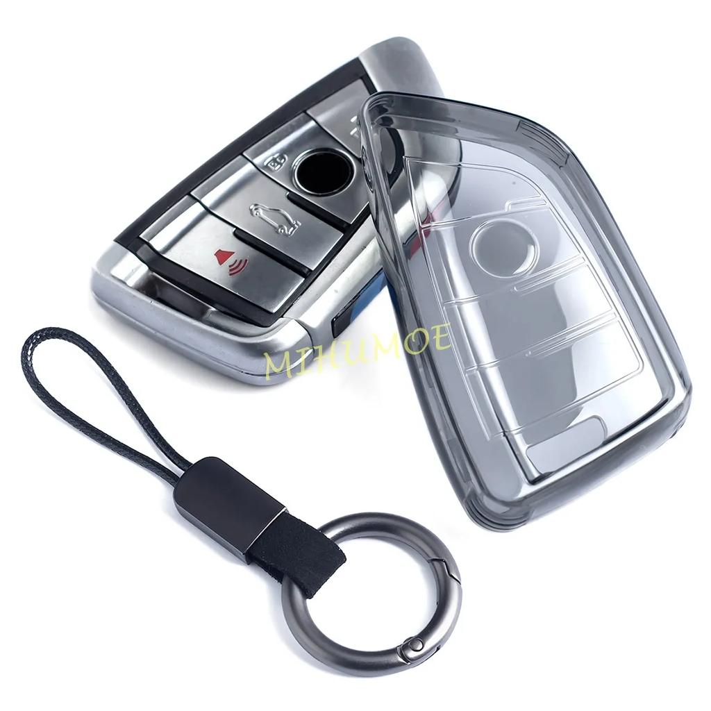 For BMW G20 G21 G22 G30 G31 F48 F39 G01 G05 G06 G07 G14 F40 F44 Black Transparent Key Fob Case Cover Keychain Light Thin