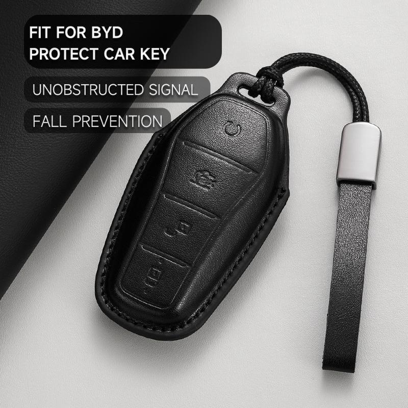 Leather Car Key Cover Case Protection Shell Keychain for BYD Tang EV600 Han EV Yuan ATTO 3 Song PLUS Pro MAX DMI Qin Dolphin