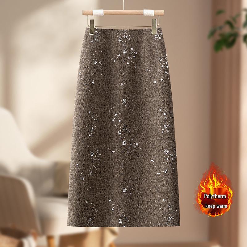 This chic high-waist skirt combines comfort and style, crafted from high-quality polyester material with a soft woolen texture. The sportive design is elevated by dazzling sequin embellishments, making it perfect for adding a touch of glamour to your everyday wardrobe. Ideal for both casual outings and stylish events, this straight skirt offers versatility and elegance in one stunning piece.