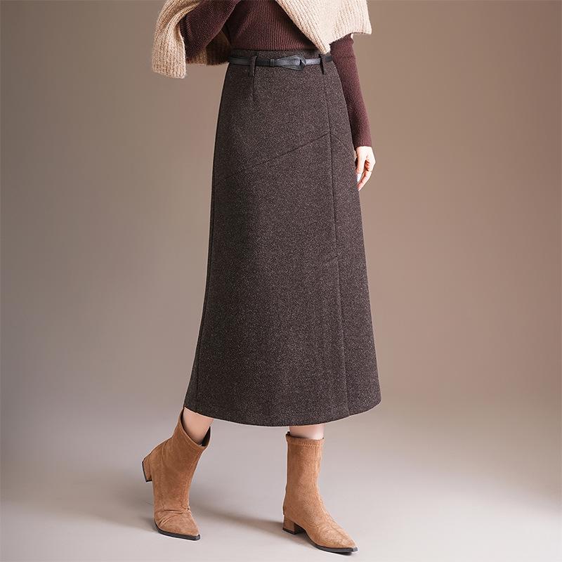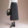 Damen Midirock in A-Linie aus dicker Wolle, Grau - Winterstyle 2025, Stilvoller Schlitz