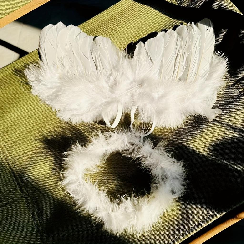 Elegantes Engelsflügel & Tiara Set Bequeme weiße gefiederte Flügel Foto-Requisiten für 0-6 Monate Geburtstags-Fotografie-Zubehör