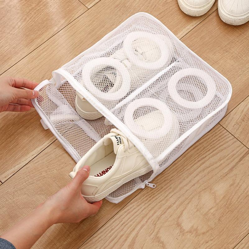 1pc Reusable Mesh 1pc Portable Shoe Washing Bag - Travel Storage Zipper Bag - Keep Shoes and Underwear Clean and Fresh