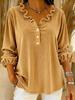 European & American Style Women's Corduroy Ruffle Collar V-Neck Long Sleeve Top