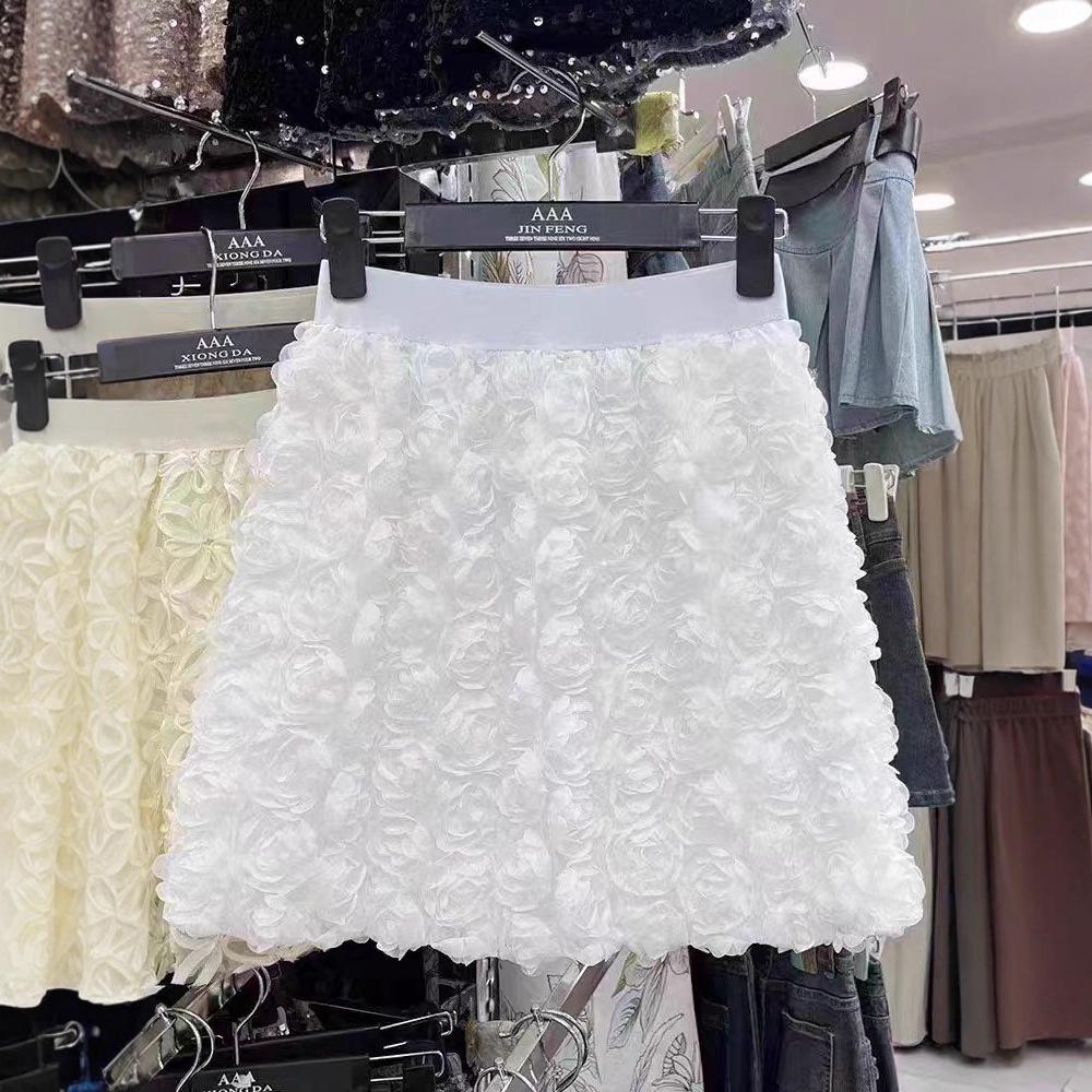 Damen Europäischer & Amerikanischer 3D-Rosen A-Linien-Rock: Eleganten Schlankmachenden Kurzen Rock