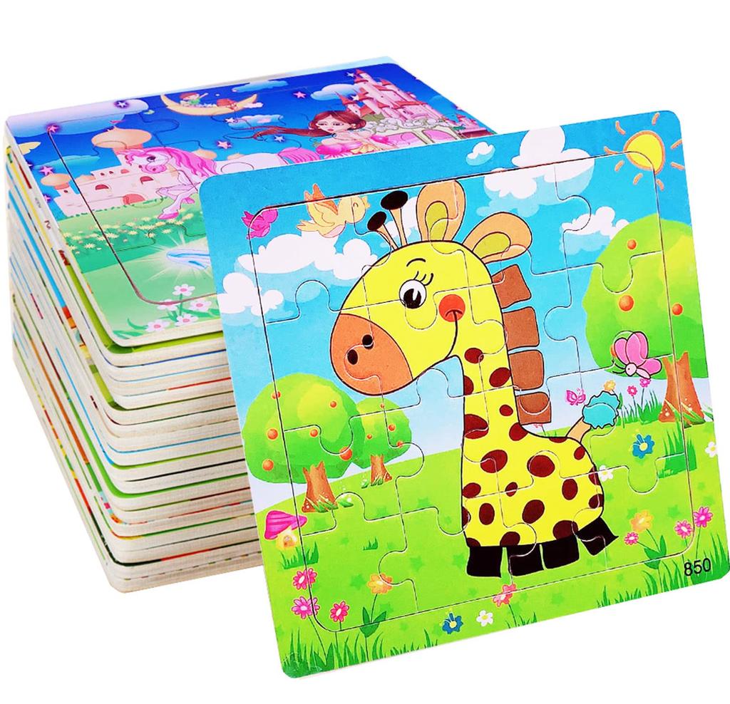 Bacolos Wooden Jigsaw Puzzle for Children Ages and and for Montessori Puzzle, 16-Piece Animal-Shaped 3, 4, 5, Seniors, Education.