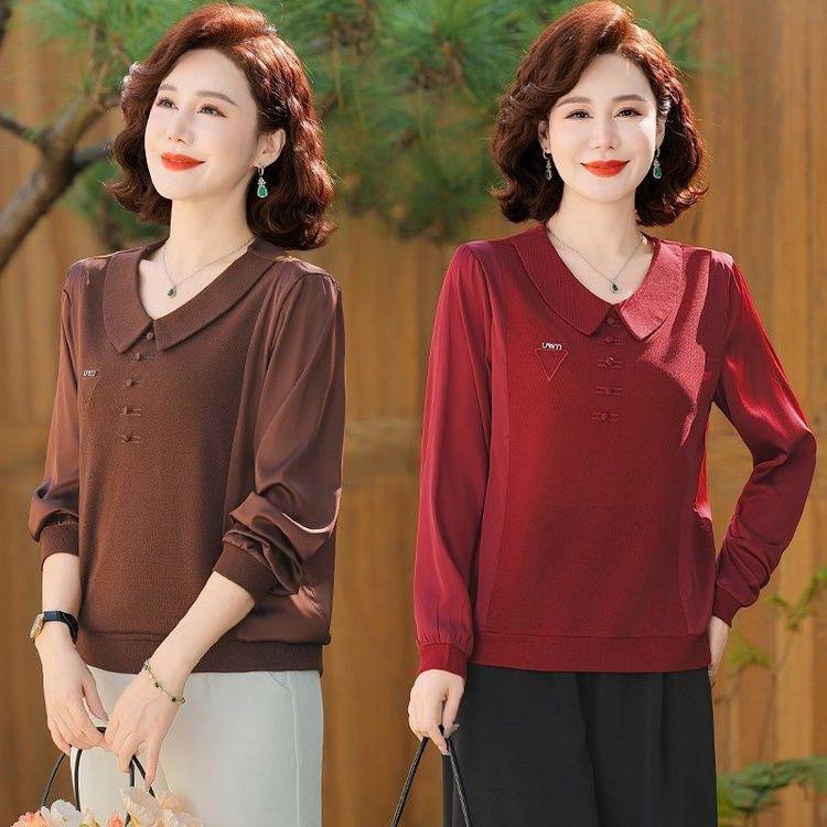 This elegant long sleeve lapel t-shirt is designed specifically for middle-aged and elderly women, offering both style and comfort. Made from a high-quality polyester material, it features a tencel-blended design that provides a soft and luxurious feel. The long sleeves and tailor neckline add a touch of sophistication, while the tummy-covering base layer offers a flattering fit. Perfect for both spring and autumn seasons, this t-shirt ensures you stay fashionable and comfortable.