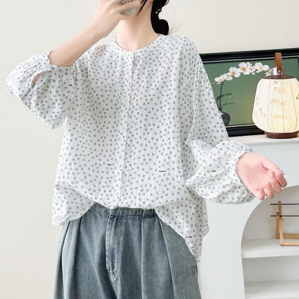 2026 Early Spring Women's Japanese Style Floral Cotton Gauze Lantern Sleeve Top