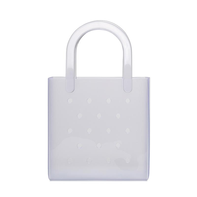Waterproof Summer Beach Bag Solid Color Jelly Tote Bag Portable Rubber Hole Handbags Baskets