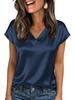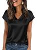 Europäisches & Amerikanisches Seiden V-Ausschnitt Damen Business Casual Kurzarmhemd
