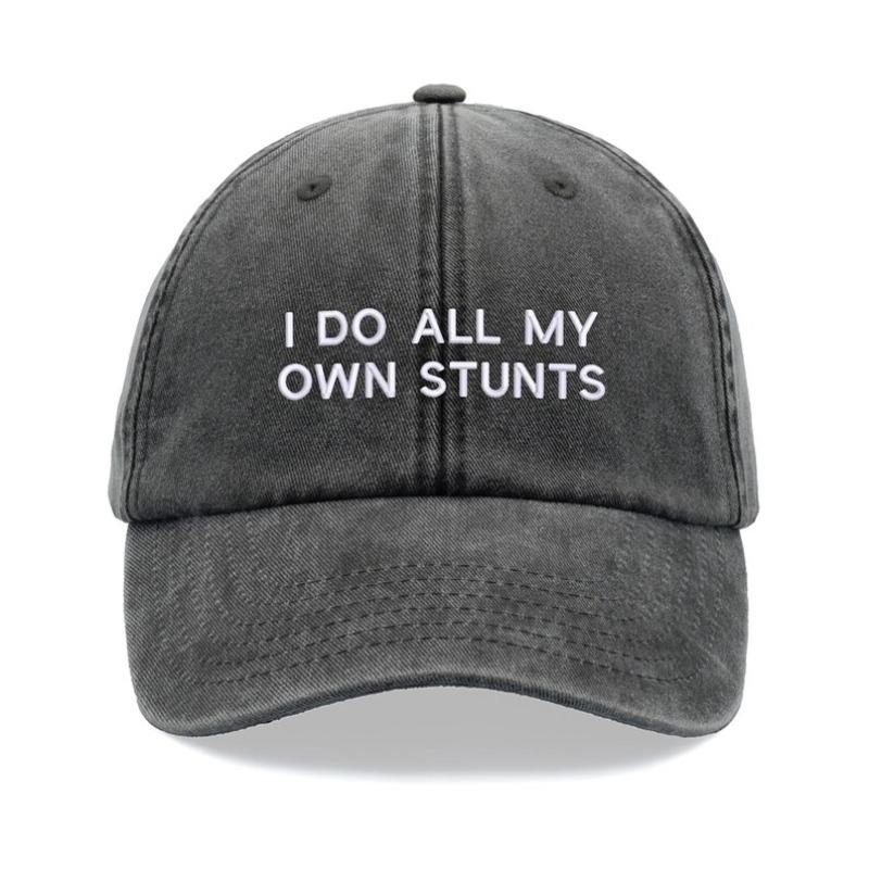 1pc "I Do All My Own Stunts" Baseball Cap Men Retro Washed Unisex Dad Hat Adjustable Funny Faded Sports Sun Fathers Day Stuntman