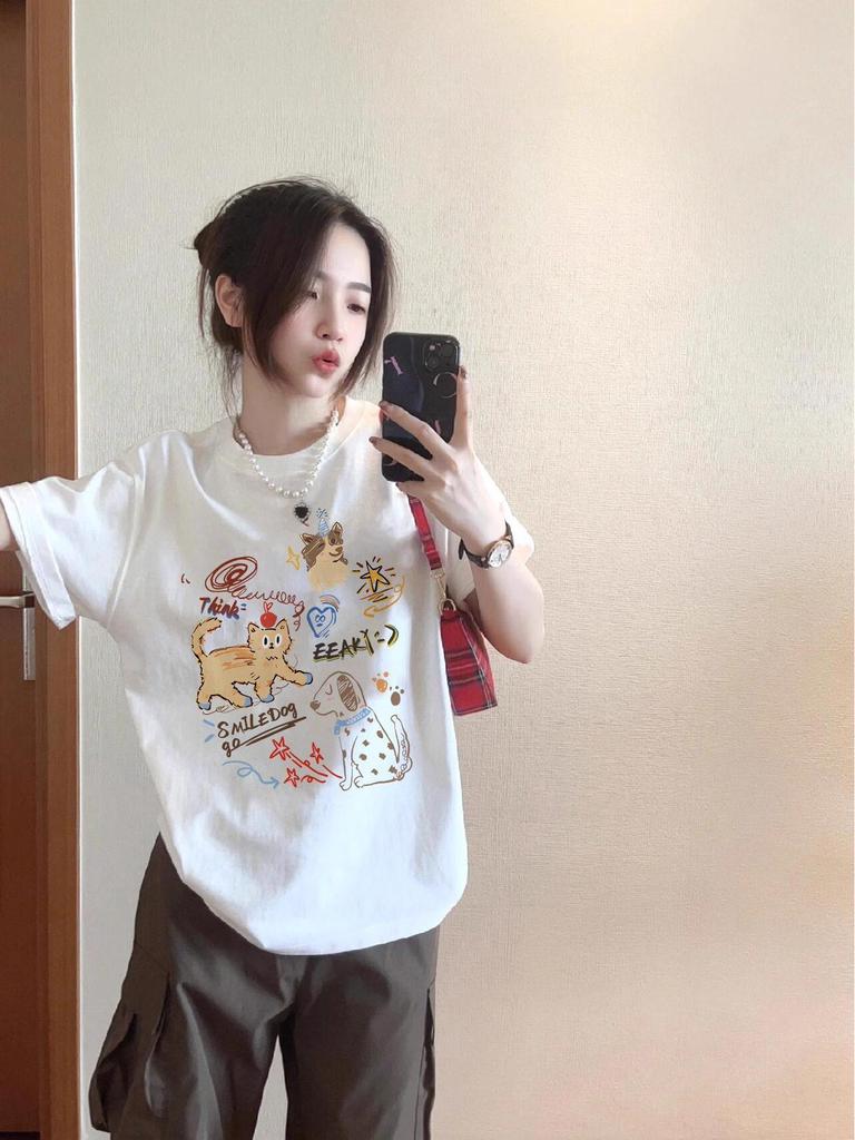 Dieses lässige T-Shirt für Damen in Übergröße ist aus einem weichen, atmungsaktiven Baumwollmaterial gefertigt und sorgt so für Komfort in den Sommermonaten.. Es hat kurze Ärmel und einen klassischen runden Ausschnitt, was es zu einer vielseitigen Ergänzung für Ihre Garderobe macht.. Das herausragende Detail dieses T-Shirts ist sein lebendiger amerikanischer Cartoon-Print, der Ihren Freizeit-Outfits ein verspieltes und lustiges Element verleiht.. Mit seinem lockeren Schnitt bietet dieses T-Shirt sowohl Stil als auch Komfort und ist perfekt für entspannte Ausflüge oder zum Faulenzen zu Hause.
