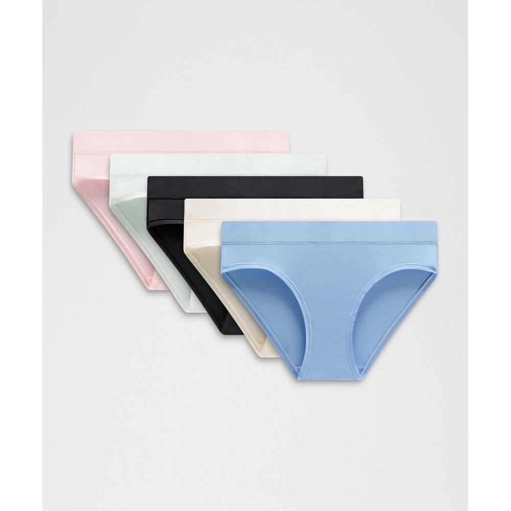 Lululemon Underease Mid Rise Bikini Underwear 5 Pack Black Light Ivory Blush Quartz Pelican Sinatra Blue