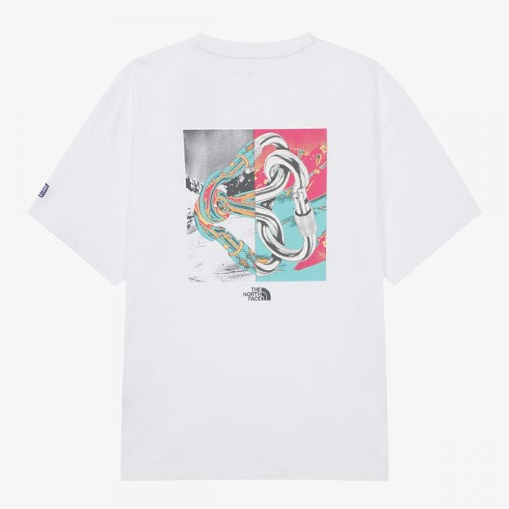 This is a Carabiner graphic short-sleeve t-shirt from The North Face's Colliman collection. It features a colorful carabiner graphic on the back for visual impact and a climbing wall patch detail on the sleeve, making it a daily item that can be worn alone or layered with a hoodie.
