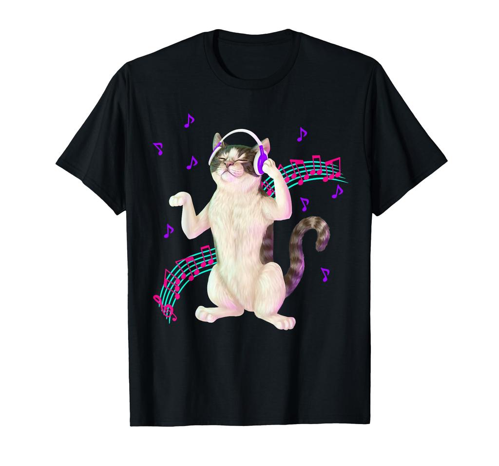 Katze hört mit Kopfhörern Musik T-Shirt
