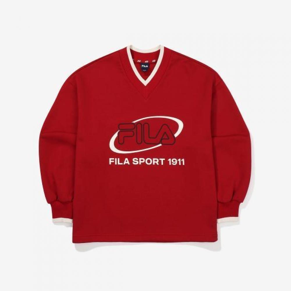 Fila Big Logo V Neck Cotton Blend Sweatshirt Fs2pof3155f