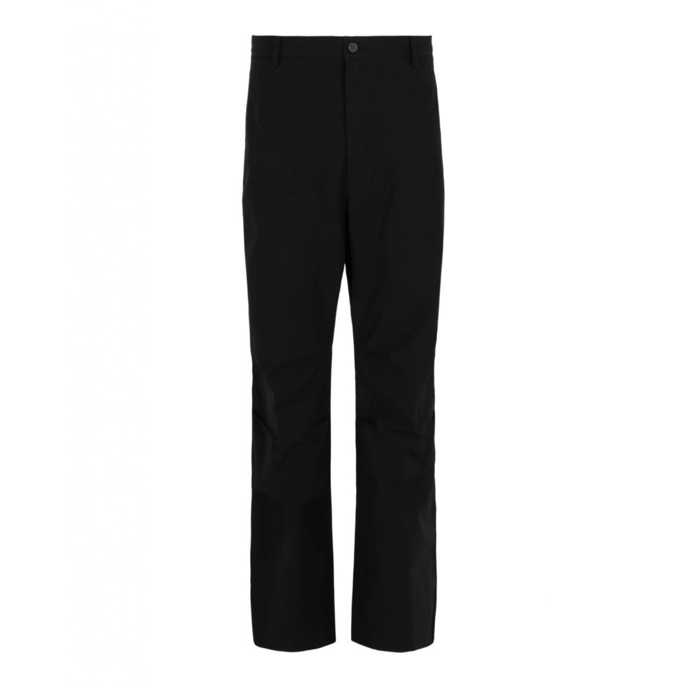 The Salvatore Ferragamo Cotton Blend Pants feature a front button and zip closure in a mid-rise design, providing a straight leg with a loose fit. The unfinished hem adds a unique touch, and there are double pleats at the knee. A contrasting logo label is present on the back pocket, with two side slit pockets and two back welt pockets that come with button closures. The pants are dry clean only, crafted from 84% polyester and 16% cotton, and lined with 100% cotton. Made in Italy.