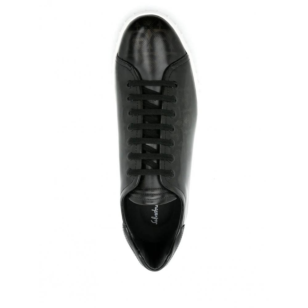 - Design: Gancini print, round toe, front lace-up fastening
