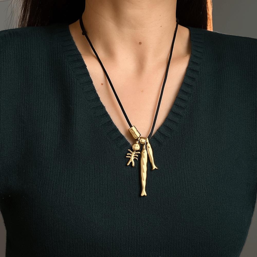 Adjustable Bone Pendant Choker Vintage Sweater Chain Versatile Fish Pendant Necklace Casual Wear