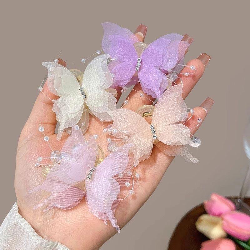 Organza Butterfly Claw Clips for Women Sparkly Beaded Hair Clamps,Prom Wedding Daily Hair Accessories Girl Hair Accessoires