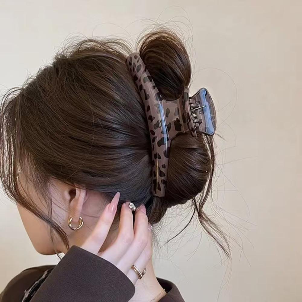Chic leopard pattern shark clip, popular Korean hair accessory for women's hair styling, elegant and trendy