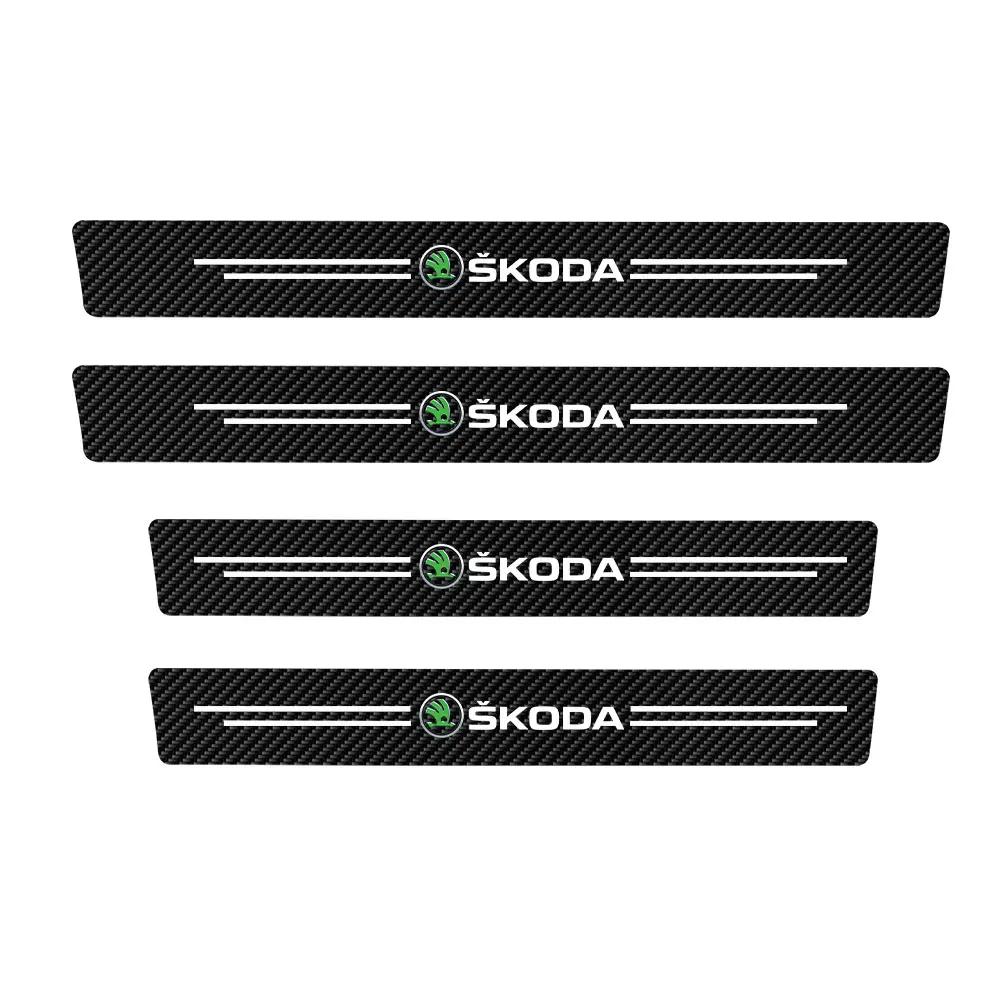 2026 Heiß 4 Stück Kohlefaser Auto Türschwellen Schutz Schwellenaufkleber Für Skoda Rapid Scala Kodiaq Fabia Kamiq Karoq Octavia 3 A