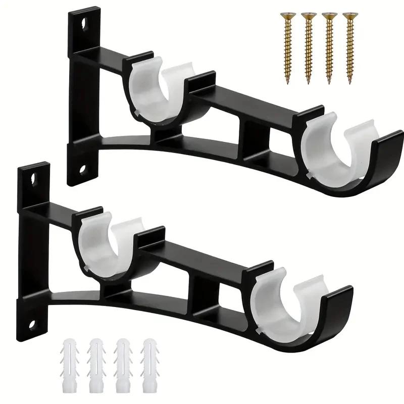 1Set Aluminum alloy curtain rod Roman pole bracket, top mounted single pole double pole base bracket, modern and simple