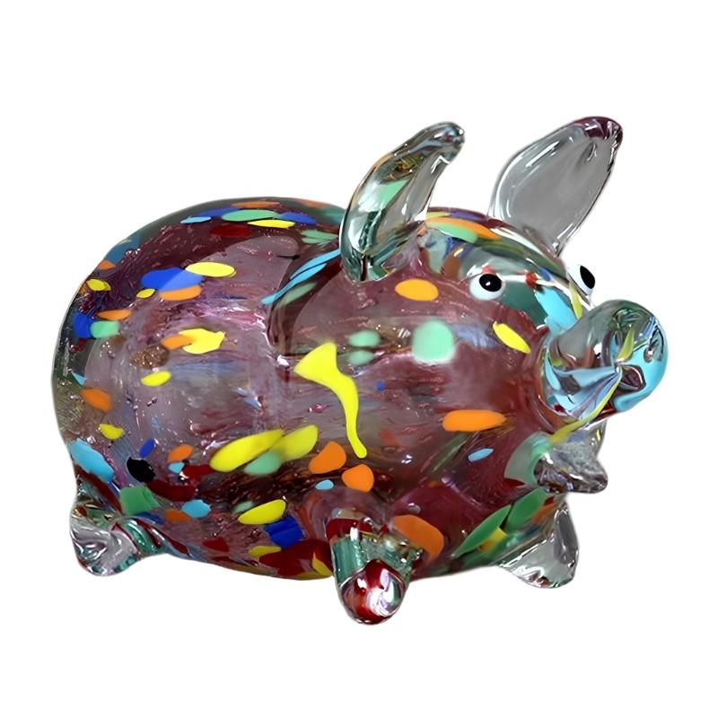 Glass Pig Miniature Sculpture Chinese Zodiacs Animal Figurine Collectible Ornament for Home Office Desktop Decoration