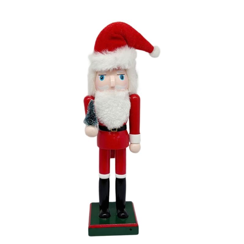 Natural Wood Christmas Santa Nutcrackers Soldier Figurine 25cm Tall Traditional Holiday Decors For Living Room Office