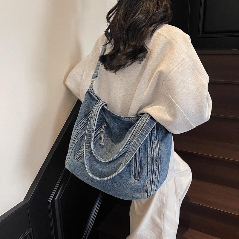 Gewaschene Denim Literarische Tägliche Pendler-Umhängetasche Neue Große Kapazität Damen Lässige Messenger-Tasche